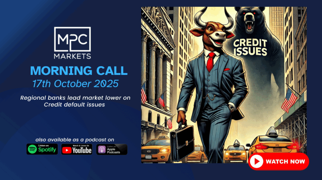 Stocks headed lower overnight, led by the banking stocks as regional banks Zions and Western Alliance revealed two problematic loans on the back of the first brands collapse. See my article on this from last week Is the First Brands Collapse a Warning Sign?