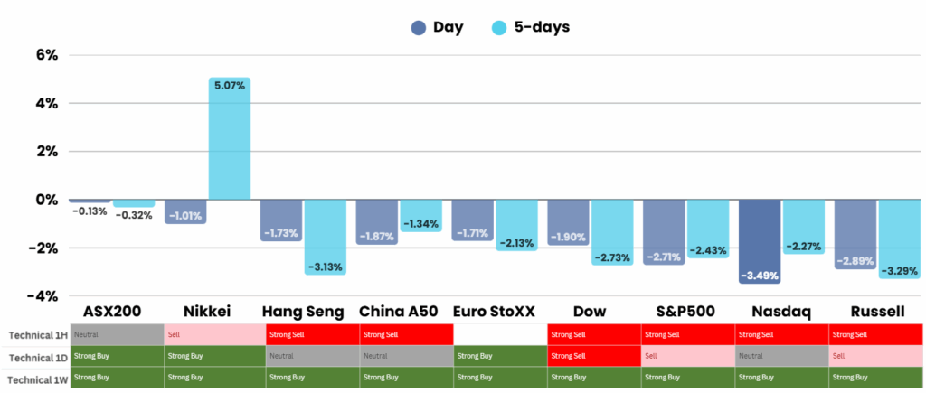 Overnight – Stocks have worst day in 6-months as Trump pokes the Tariff war hornets nest