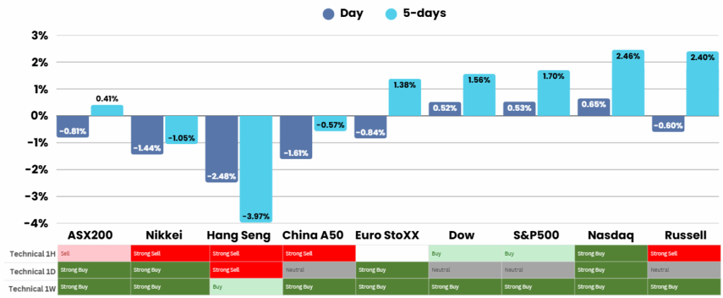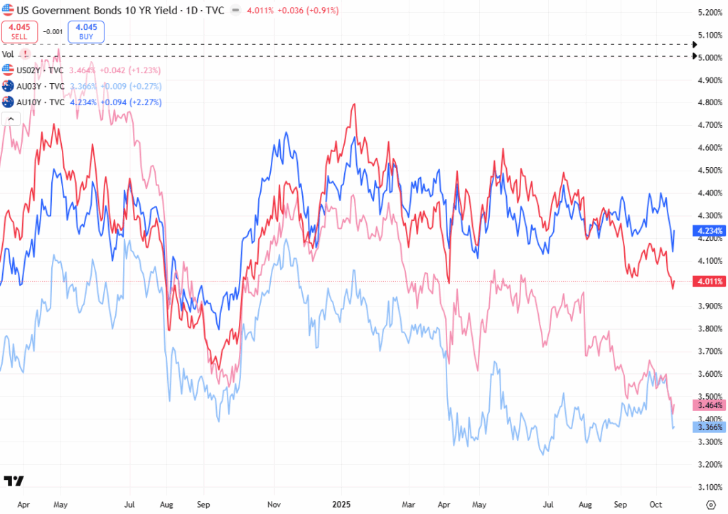The U.S. government shutdown, now in its third week, continued to dampen economic confidence by delaying key data releases and raising short-term growth worries. However, investor sentiment improved after President Donald Trump signaled a softer trade stance toward China. In a Fox Business interview, Trump said current tariffs on Chinese goods were “not sustainable,” hinting at easing tensions ahead of his upcoming meeting with President Xi Jinping in South Korea. His remarks suggested a potential opening for new trade negotiations despite recent threats of additional tariffs imposed in retaliation for China’s rare earth export restrictions.
