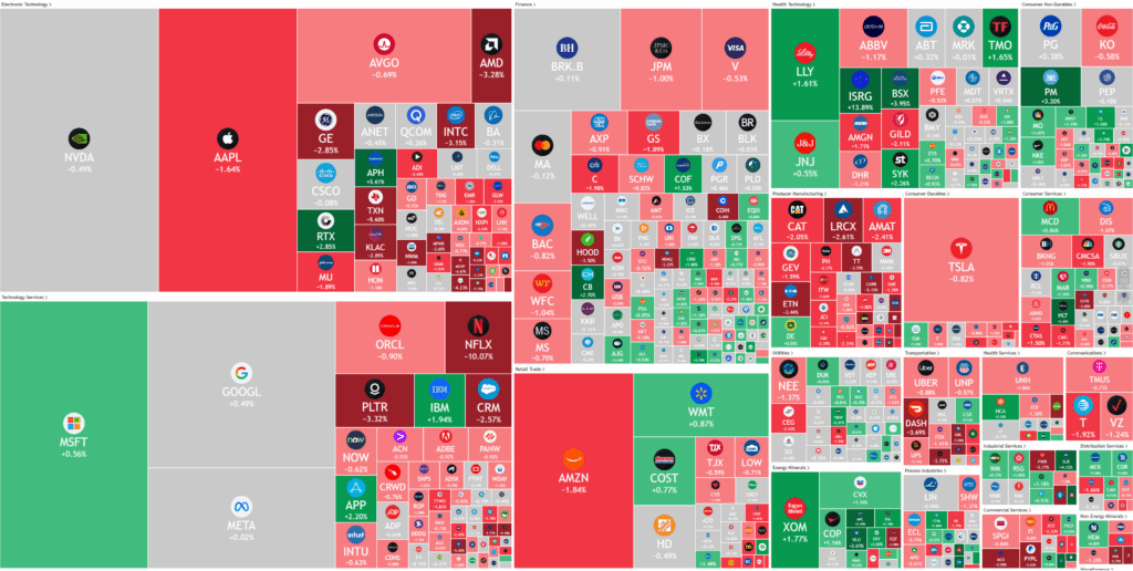 - Apple -1.85% – stock fell after the Nikkei reported that the tech giant is “drastically” cutting production orders for its new iPhone Air model and shifting focus toward other iPhone 17 variants.