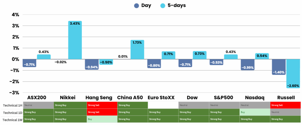 Overnight – US/China tensions and Earnings jitters send stocks lower