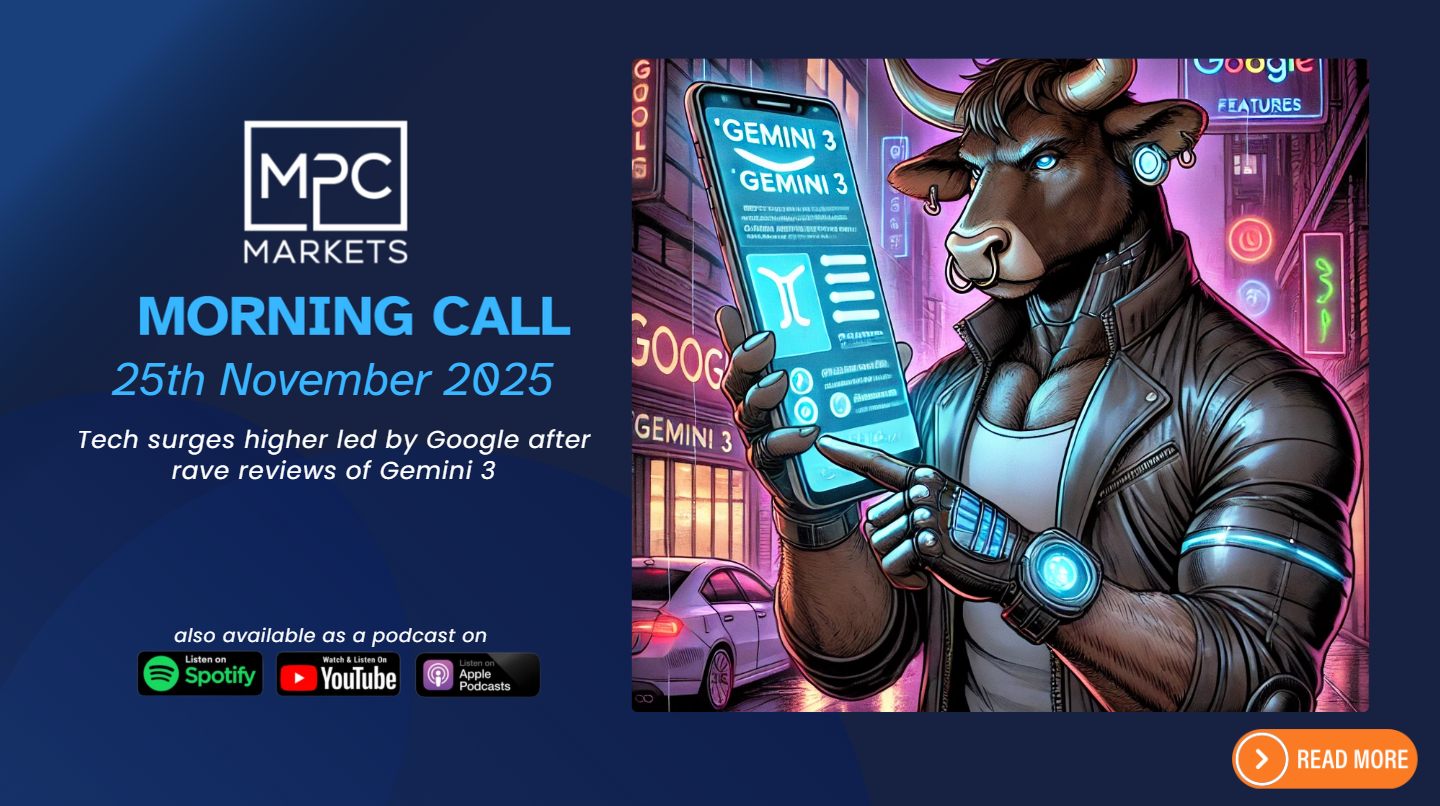 Overnight – Tech surges higher led by Google after rave reviews of Gemini 3