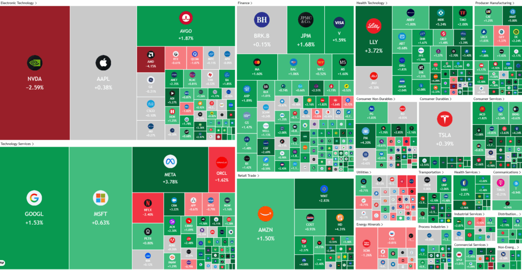 Away from mega‑cap tech, recent earnings have been notably stronger in the retail and health care sectors, providing some support to the broader equity market. Abercrombie & Fitch , Kohl’s , Best Buy and Dick’s Sporting Goods all saw their shares jump after raising profit forecasts or delivering better‑than‑expected results, signaling resilient consumer demand across apparel, electronics, and sporting goods. Health care stocks also outperformed, with names such as Merck & Co. , Revvity and Eli Lilly and Company leading a more than 2% advance in the sector, underscoring ongoing investor appetite for defensive growth areas tied to pharmaceuticals and life sciences.
