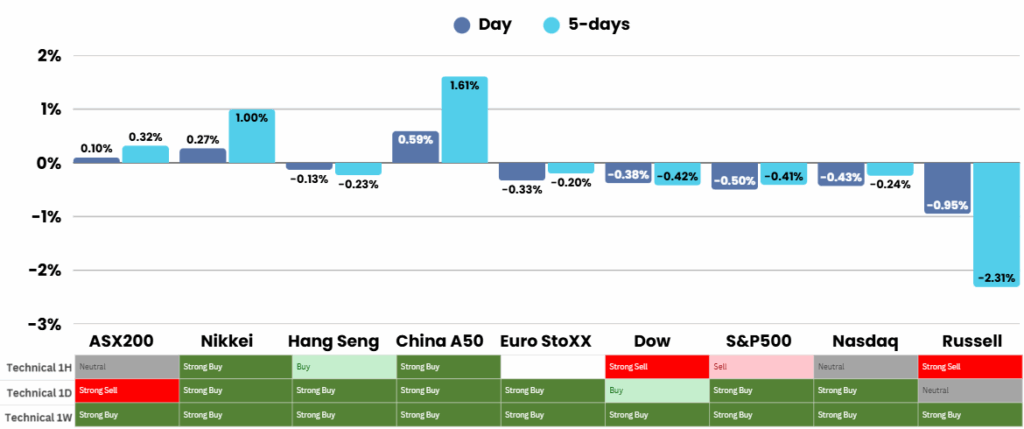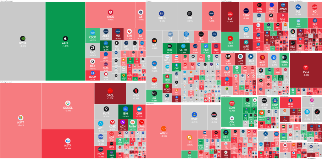 In corporate earnings, results painted a mixed picture. Nvidia bounced nearly 1% as bargain hunters stepped in after recent weakness, while Intel surged on reports it has approached Apple for potential support amid its struggles in the chipmaking sector. In contrast, Stitch Fix and CarMax both tumbled as weak demand and disappointing financial results dragged down their outlooks. Accenture, however, delivered stronger-than-expected revenue and announced an $865 million restructuring plan, aimed at positioning the company to seize growing demand in digital and artificial intelligence services.