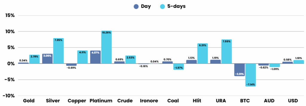 Overnight – Silver and Platinum surge to multi-decade highs
