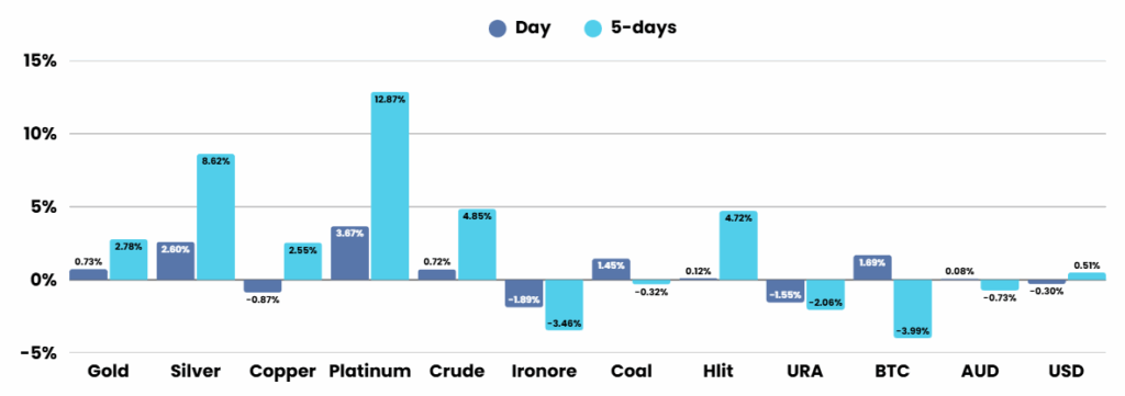 The Australian sharemarket ended slightly higher on Friday, with the S&P/ASX 200 rising 0.1 per cent to 8758.6 as gains in miners and banks outweighed steep losses in healthcare stocks. Healthcare fell after the US confirmed a looming 100 per cent tariff on imported branded pharmaceuticals, pressuring CSL, Telix, and Pro Medicus. In contrast, resource stocks rallied on surging silver and lithium prices, while banks also advanced modestly. Among corporate movers, Vulcan Energy jumped on a major German contract, Fortescue held steady despite new clean-energy deals, and Elanor Commercial Property rose after spurning a takeover bid.