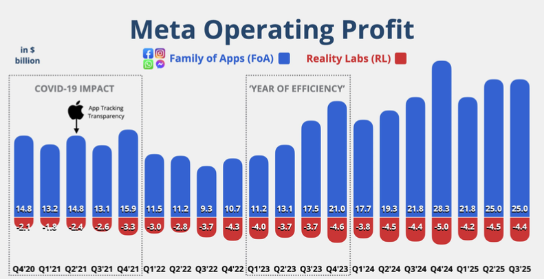 Meta -9.11%  reported a sharp decline in quarterly profit due to a $15.9 billion tax charge, sending its shares down 6% in after-hours trading. Excluding the charge, its operating margin was 40%, and revenue rose 22% to $51.24 billion on strong ad demand. Despite surpassing expectations, Meta warned of regulatory and legal risks in the U.S. and Europe. The company raised its 2025 expense and capital spending outlooks to fund AI infrastructure, with CFO Susan Li citing higher cloud and talent costs, while CEO Mark Zuckerberg highlighted progress in its Superintelligence Labs and AI-powered devices.